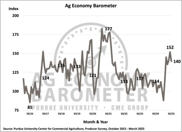 An ag economist says producers are expressing more concern about the future of U.S. ag exports in the latest Purdue University/CME Group Ag Economy Barometer.