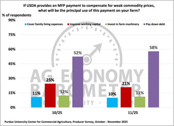 An ag economist says more than half of U.S. farmers surveyed for the last Ag Economy Barometer say they plan to use ad-hoc assistance to pay off debt.