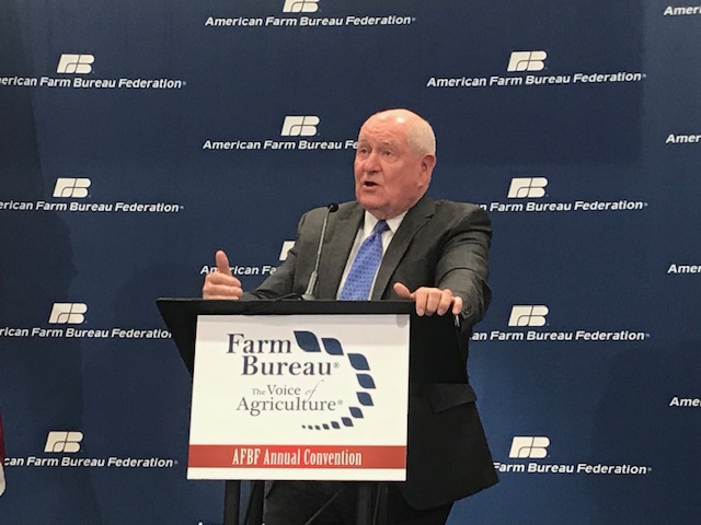 Perdue addressed Farm Bureau delegates at their closing session on Monday – Members take up policy Tuesday.