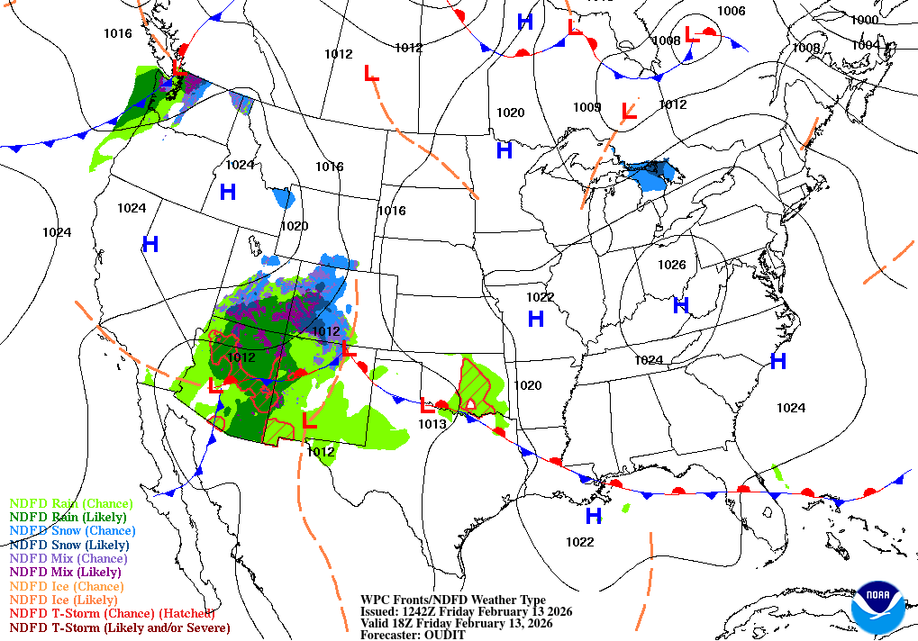 Unseasonably mild temps, centered on the Plains; showers develop on the southwest High Plains