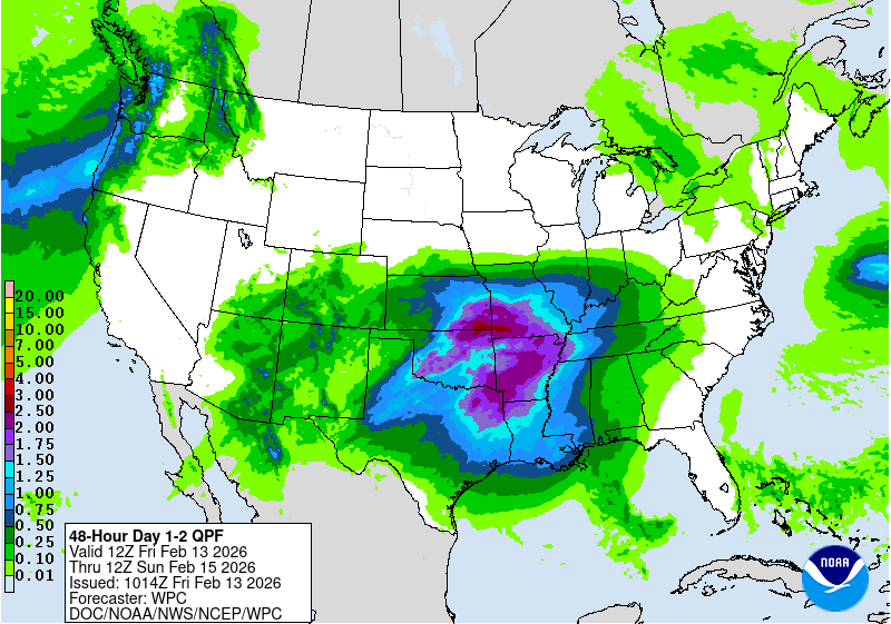 In the West, rain and snow showers in the Four Corners States are associated with a developing storm system. The remainder of the region is experiencing mild, dry weather, although widespread storminess over the northern Pacific Ocean is slowly approaching the West Coast. Although precipitation is generally not heavy, any moisture is beneficial, following a month of dry weather. Still, high-elevation snowpack is less than 50% of the mid-February average in Arizona and New Mexico, along with most of Nevada, Oregon, southern sections of Colorado and Washington, southern and western Utah, and the northern tier of California.