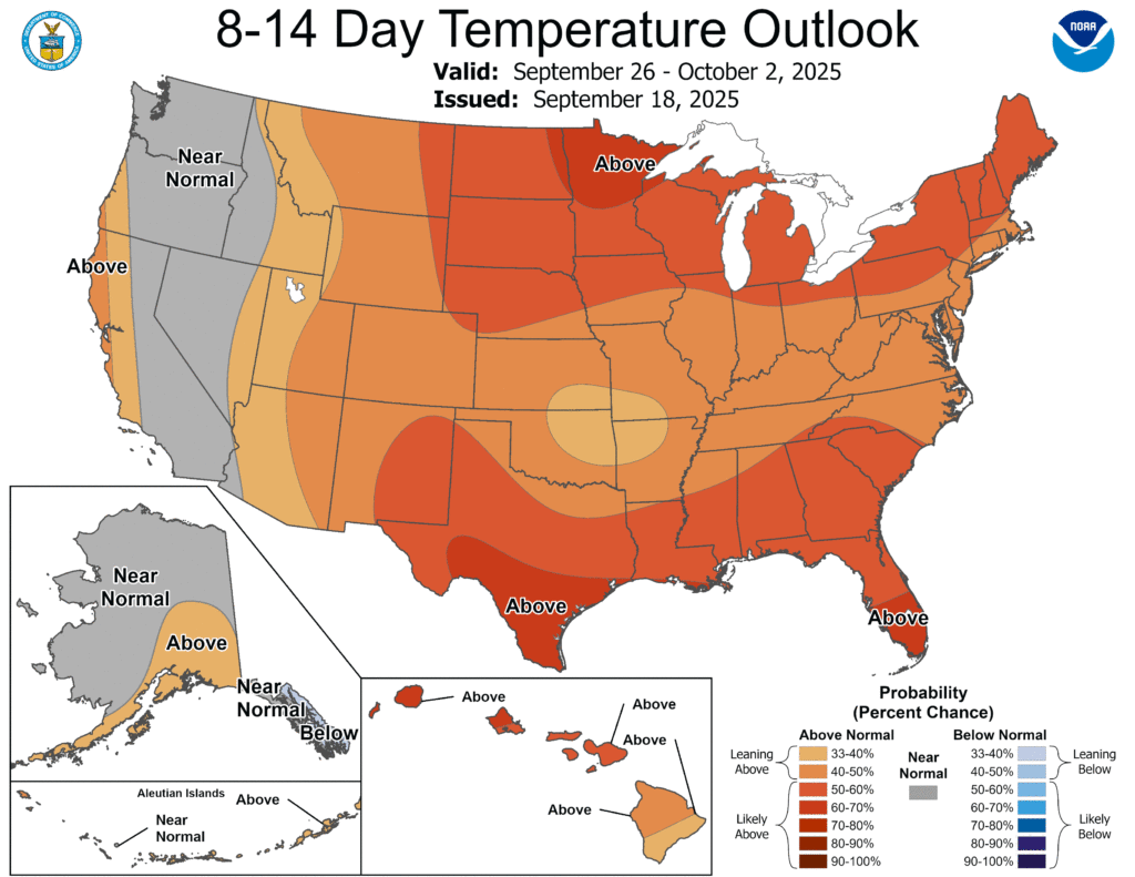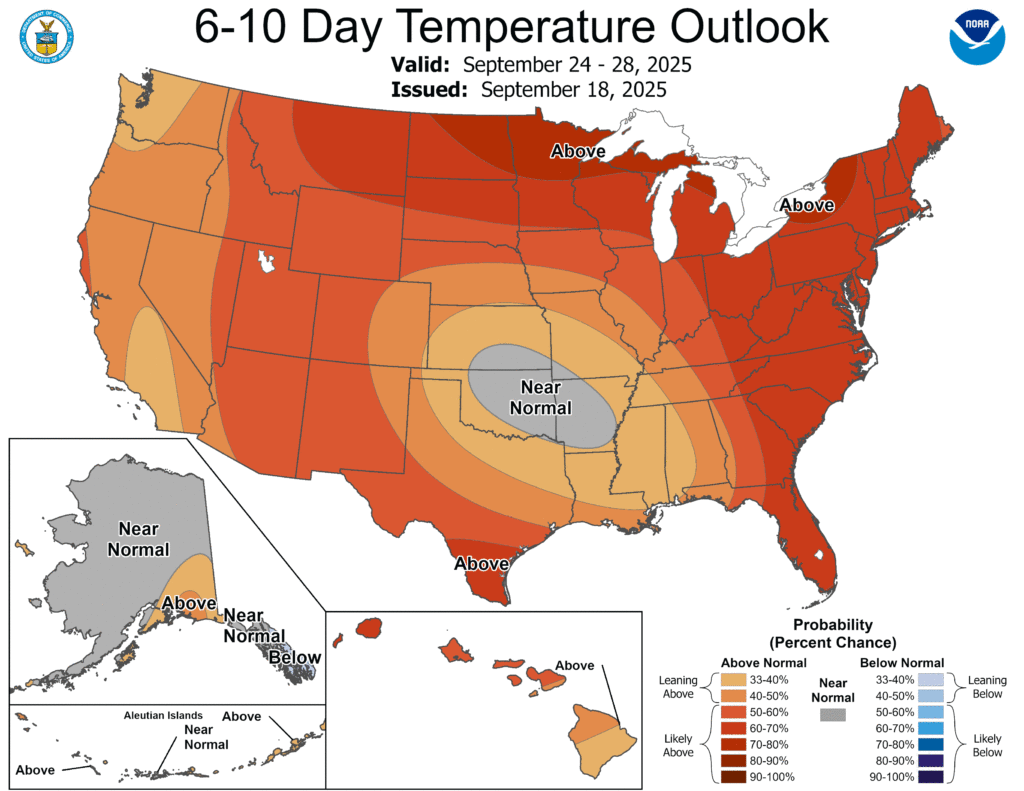 Looking ahead, the 6- to 10-day outlook calls for warmer-than-normal weather nationwide, with the Rockies and much of the northern U.S. having the greatest likelihood of experiencing above-normal temperatures.
