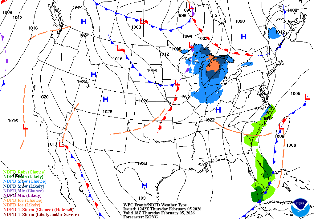 In the South, a cold front crossing Florida’s peninsula is producing beneficial rain showers, following a period of unusually cold weather and worsening drought. Freeze assessments continue in Florida and elsewhere across the lower Southeast, following the February 1-3 cold wave. Meanwhile, temperatures have rebounded to near- or above-normal levels in the western Gulf Coast region, but cool conditions persist across much of the Southeast.