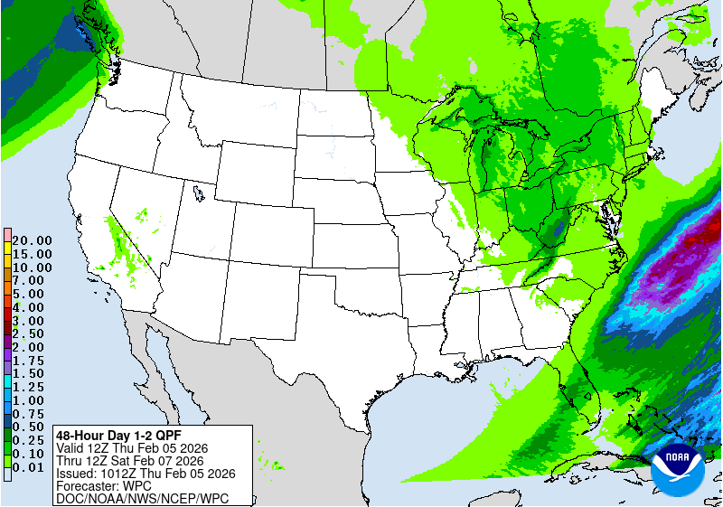 On the Plains, unusual warmth prevails. In fact, Thursday’s high temperatures should approach, reach, or exceed 70°F in parts of Montana, threatening all-time February records. Along some waterways, including portions of the Platte River in Nebraska, the mid-winter warmth is increasing the risk of ice-jam flooding. According to the recently released USDA/NASS State Stories, winter wheat conditions were mostly stable during January, although Nebraska reported an increase (from 18 to 37%) in wheat rated very poor to poor between the end of December and the end of January.